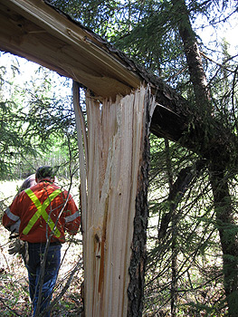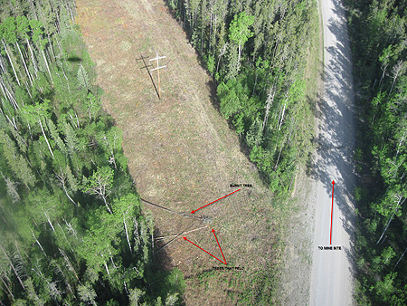 Thanks to Wildon Wiring they prevented what could have been a huge potential forest fire. Wildon Wiring's crew today will remove the burnt tree as well as spray water all around area. There is provisions for Wildon to remove the identified trees that may pose danger of hitting the line as well as we will take the line down during the July shutdown to inspect and repair the conductors if damage is noted.